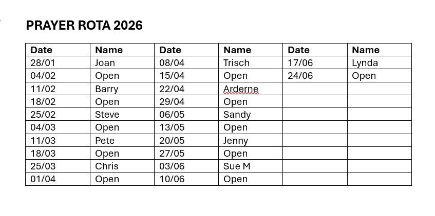 Wed Prayer Rota